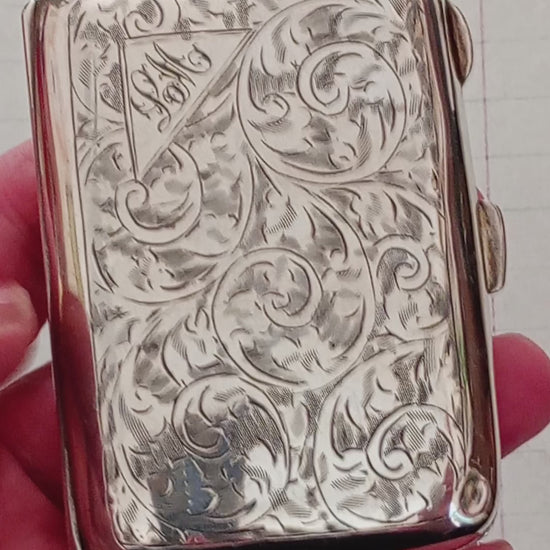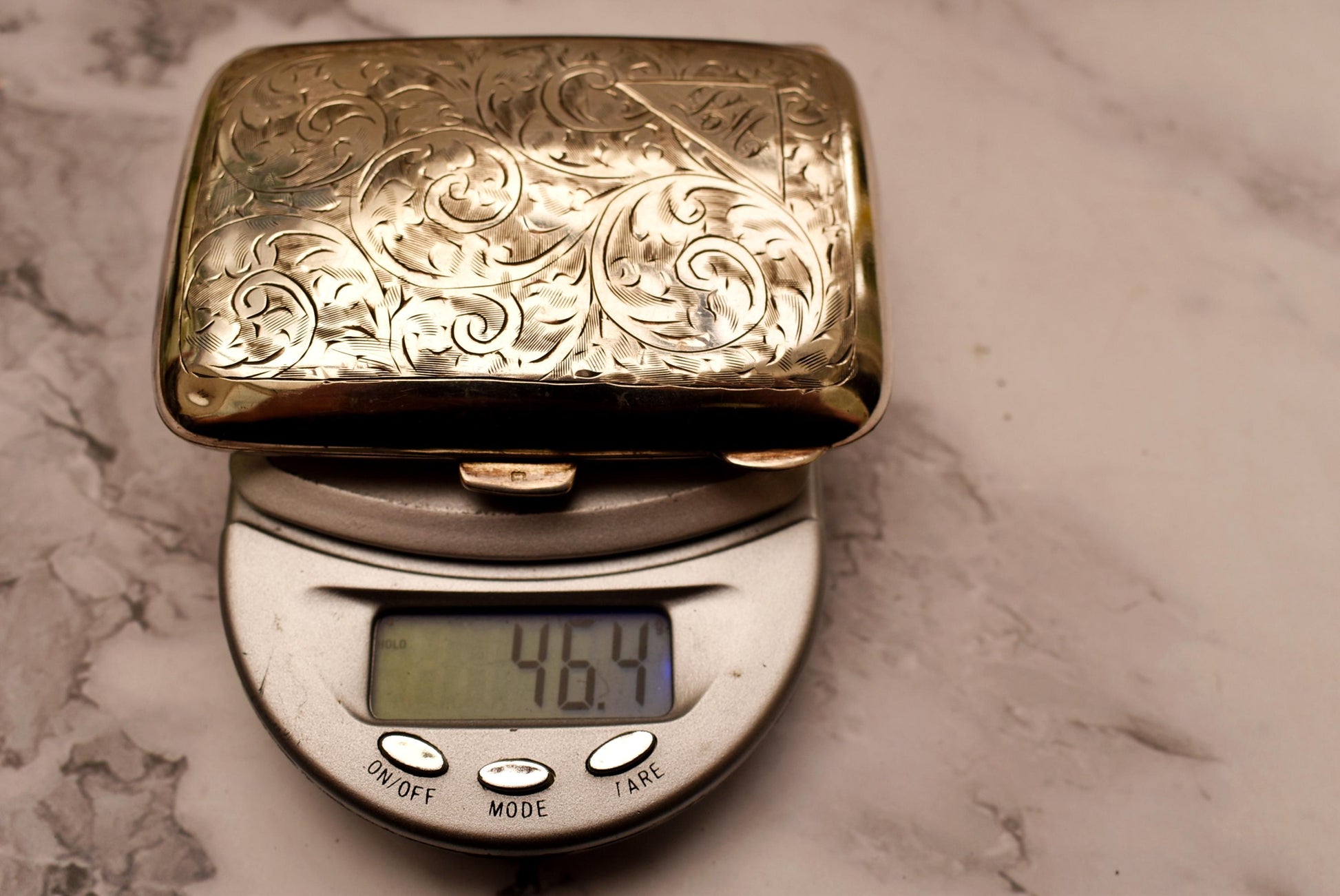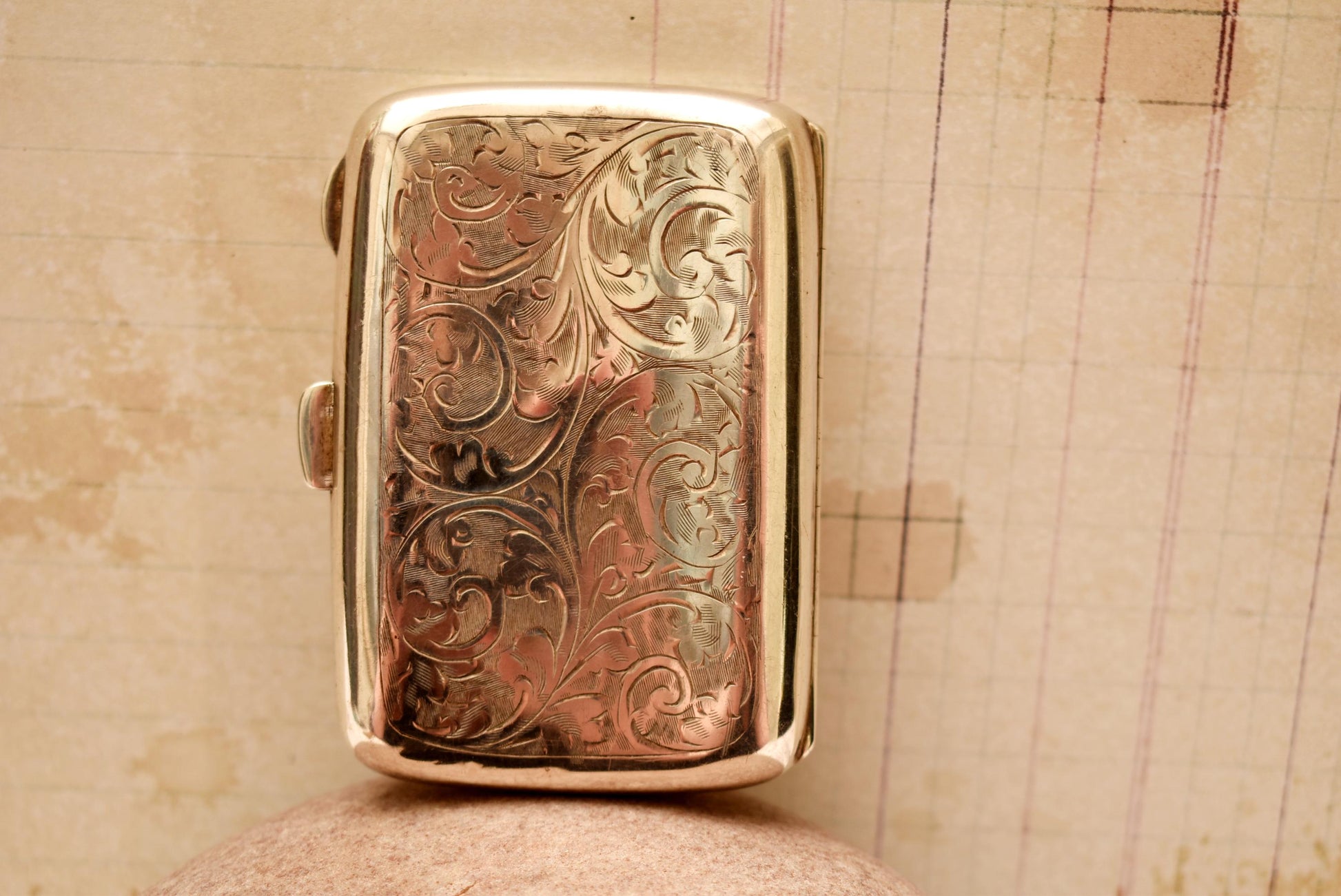 Solid Silver Cigarette Case - Gorgeous Antique Hallmarked 1929 Etched Pocket Case