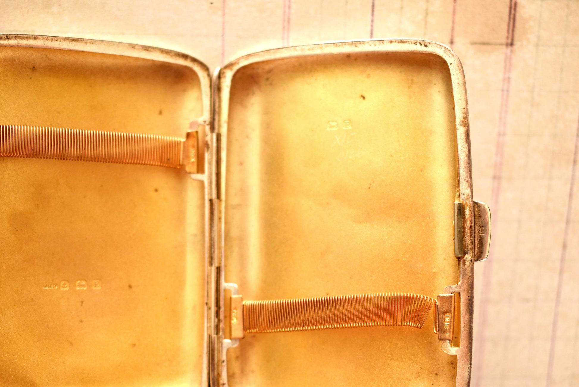 This is a gorgeous very solid silver cigarette case from 1929 and beautifully hallmarked for famous Birmingham maker William Hair Haseler.