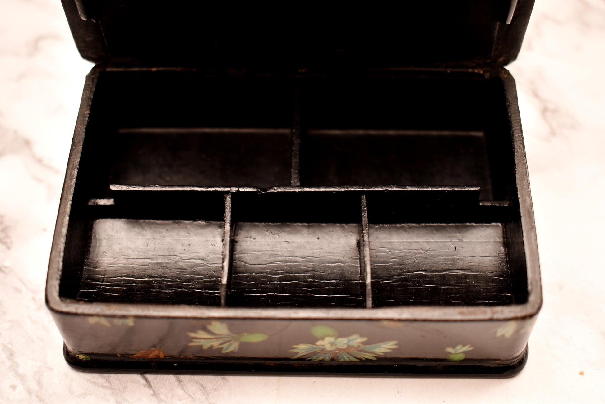 Victorian Trinket Box - Gorgeous Black Hand Painted Papier Mache Jewellery Box